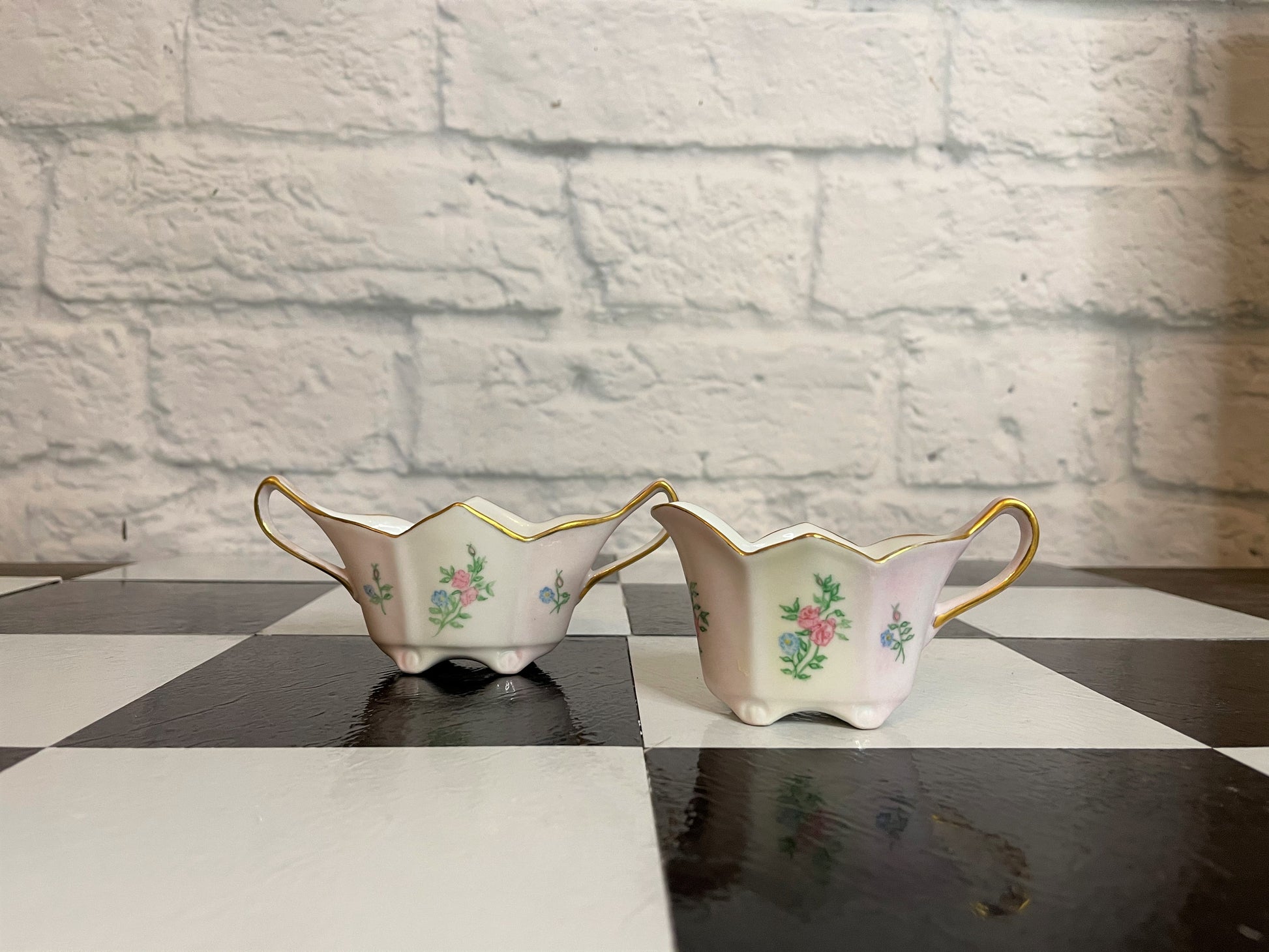 Pink and White Floral Creamer and Sugar Set - Vintage - Hand Painted
