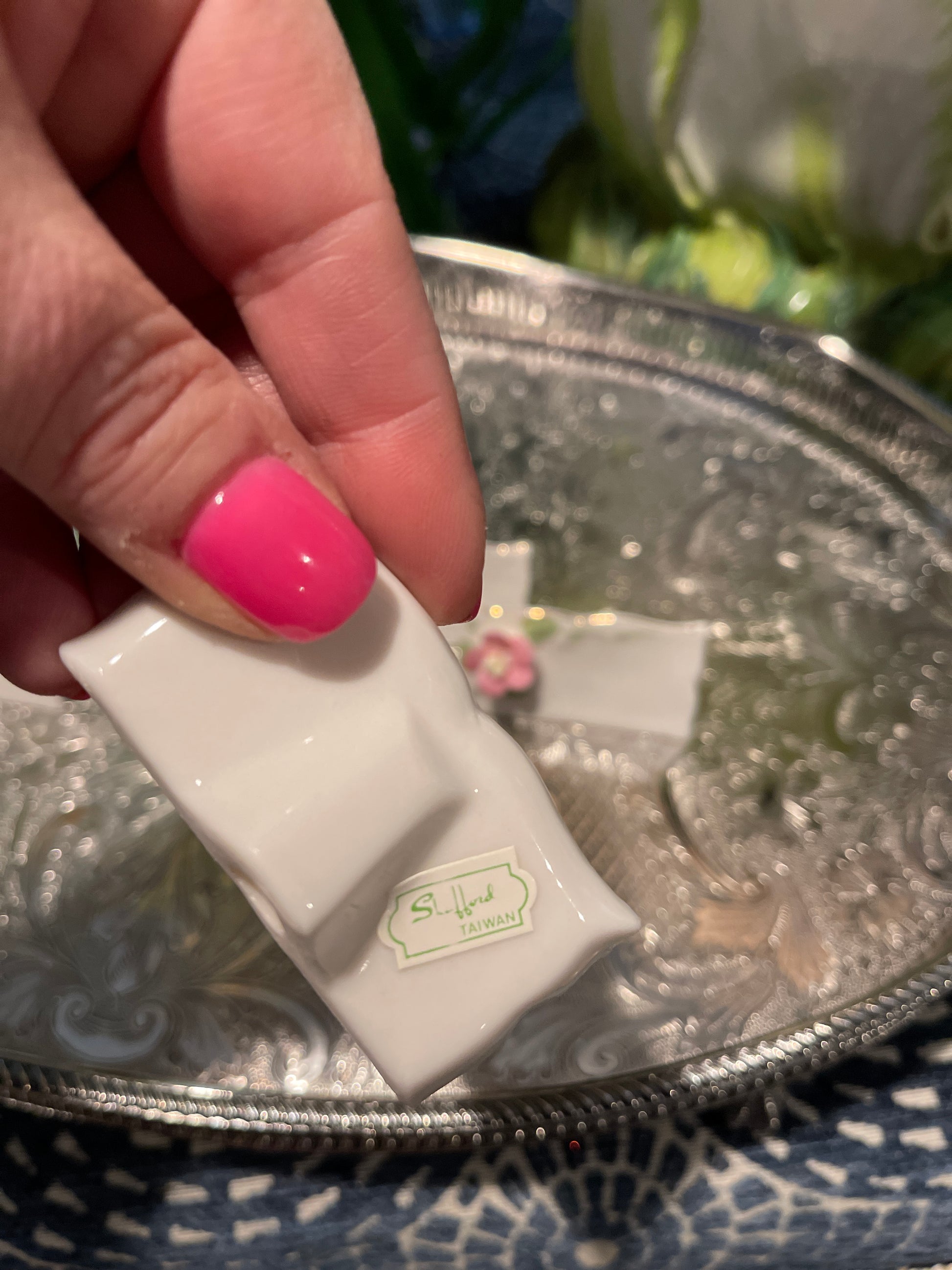 Porcelain Place Card Holders with Pink and Blue Applied Flowers, Shafford