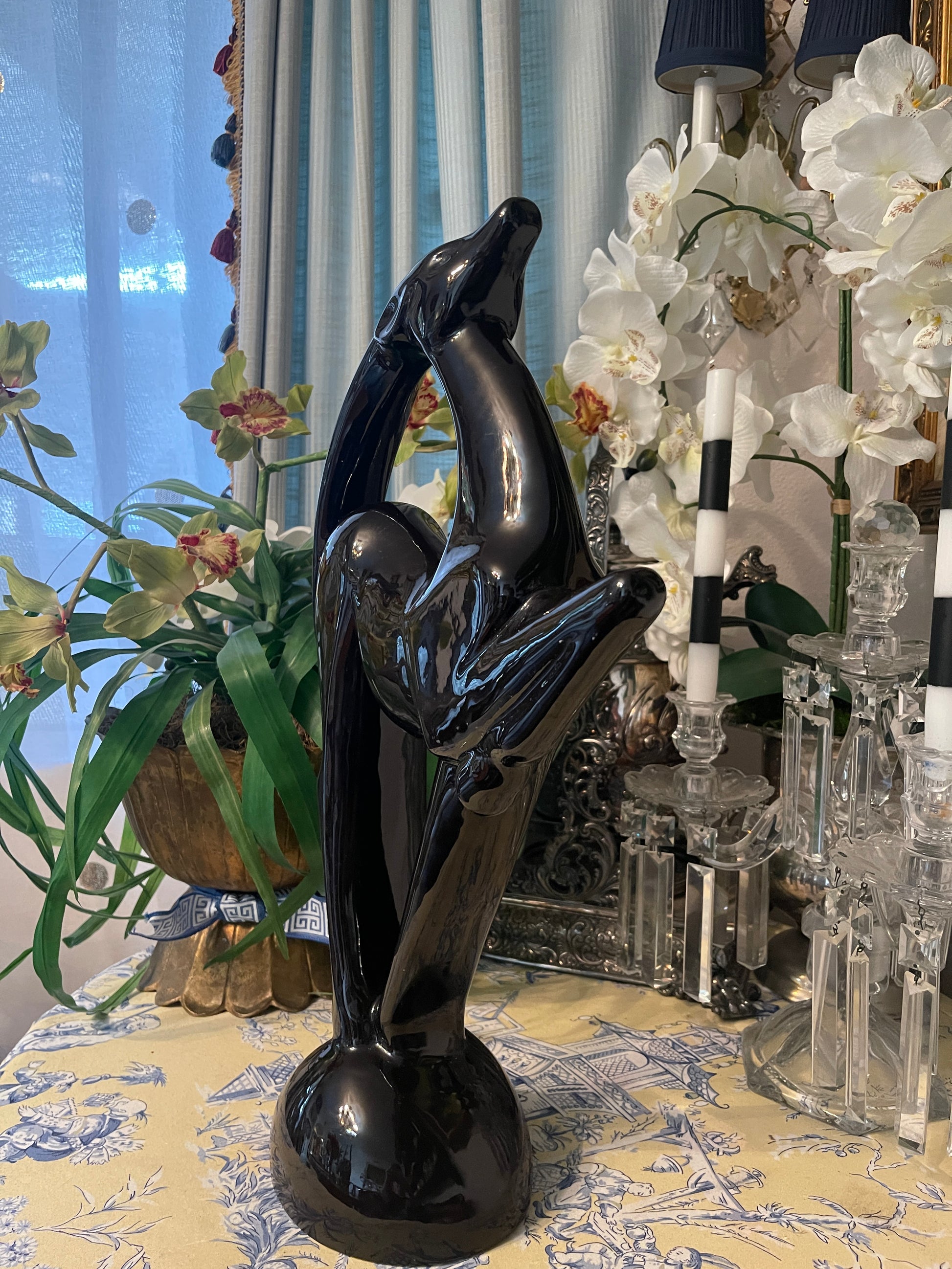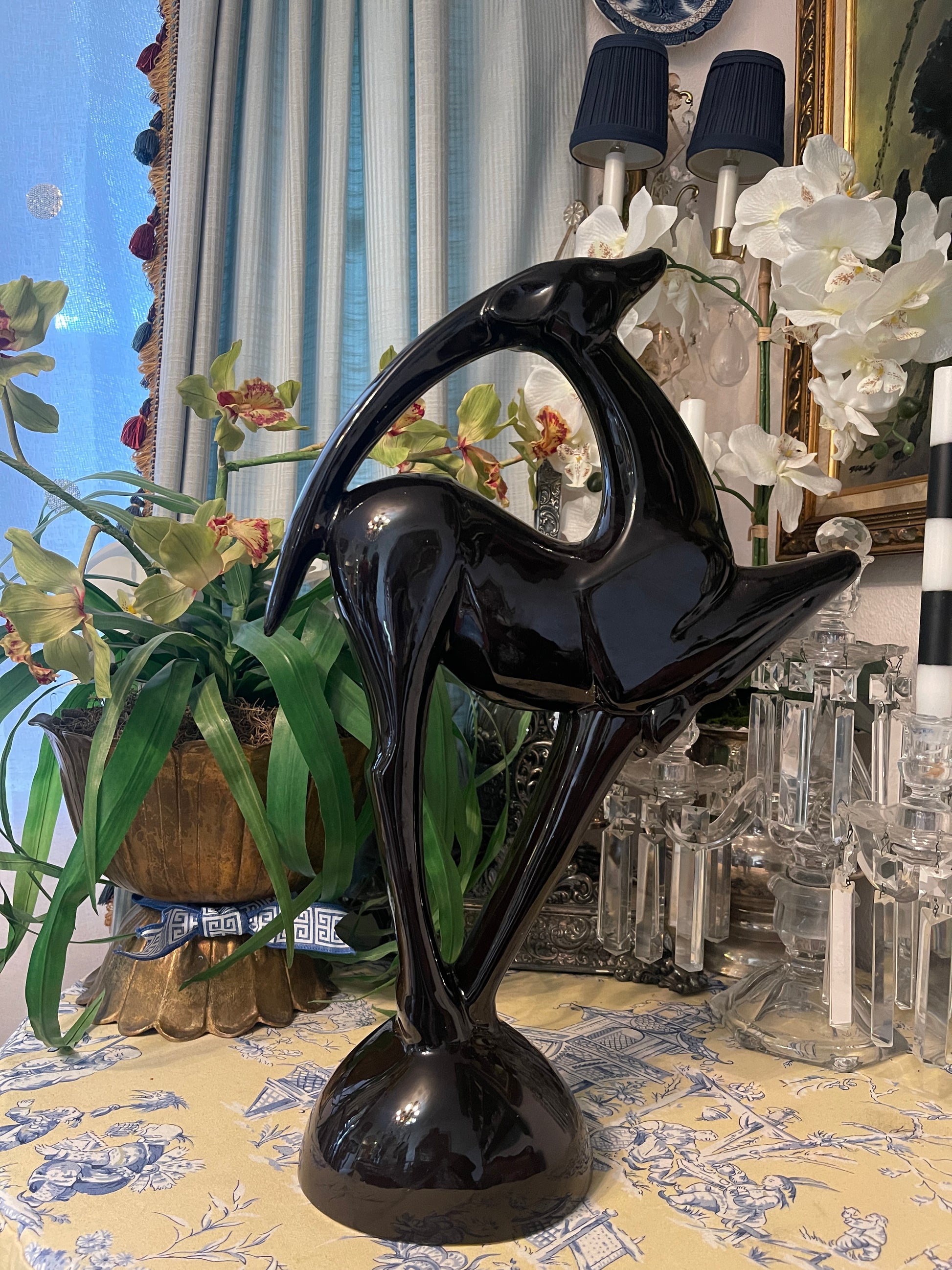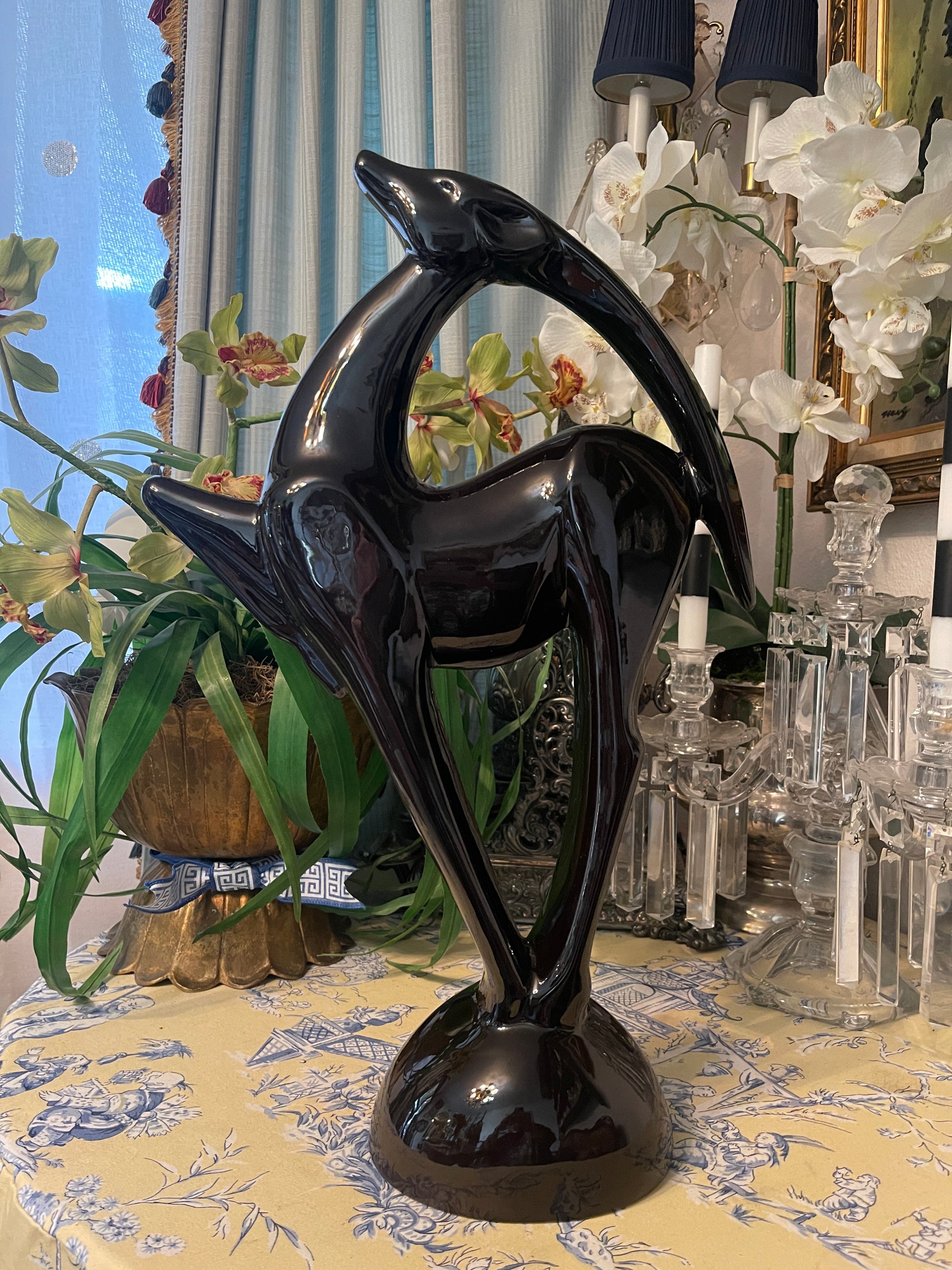 Haeger Art Deco Gazelle Sculpture in High Gloss Ebony Black