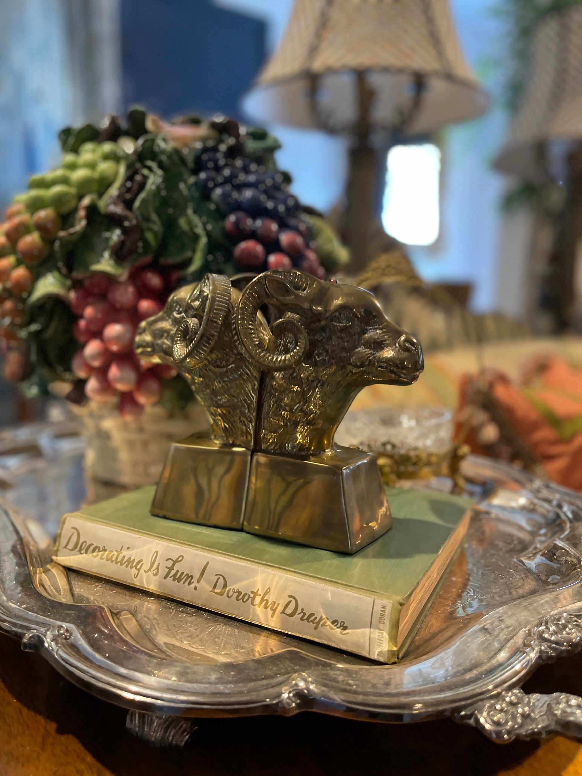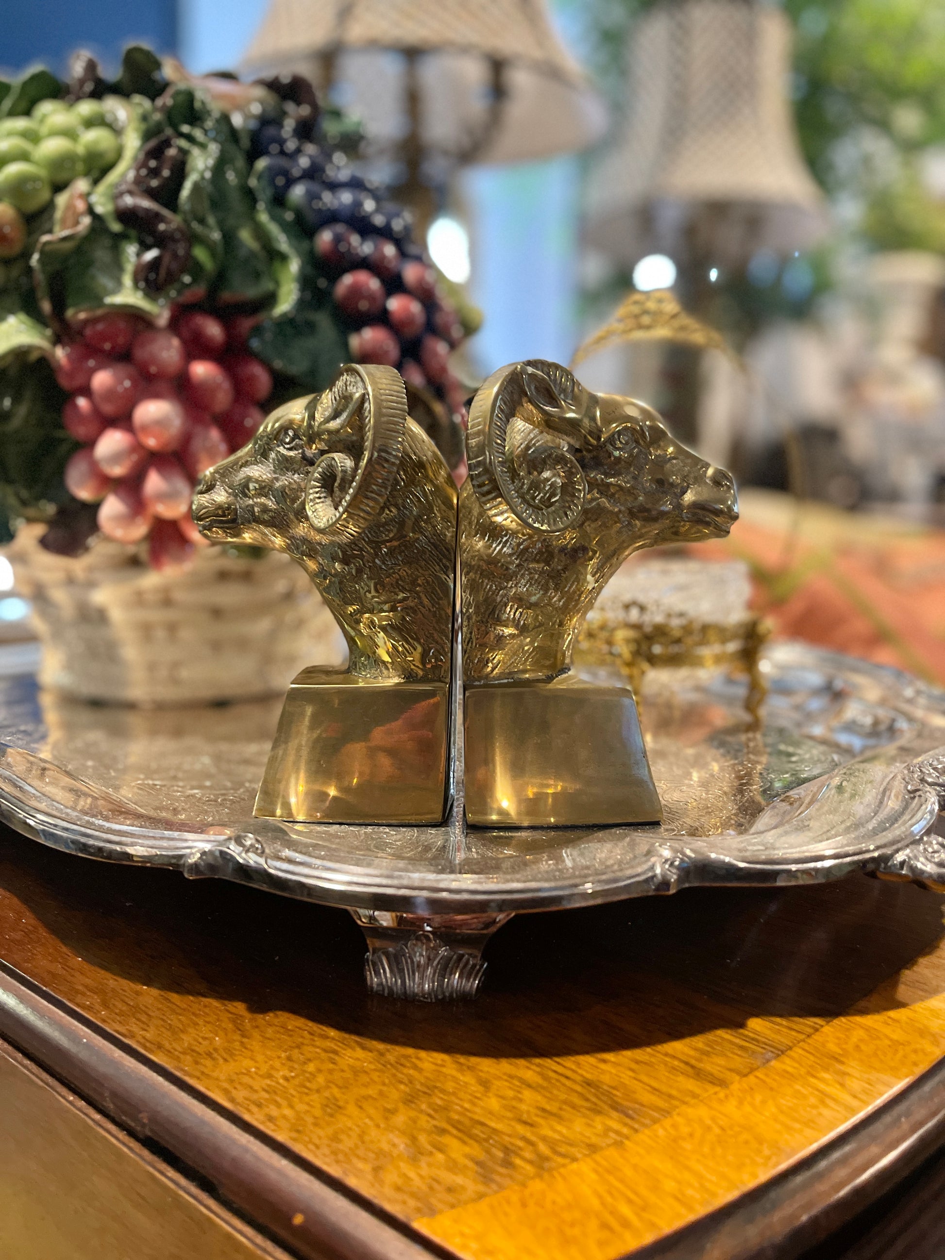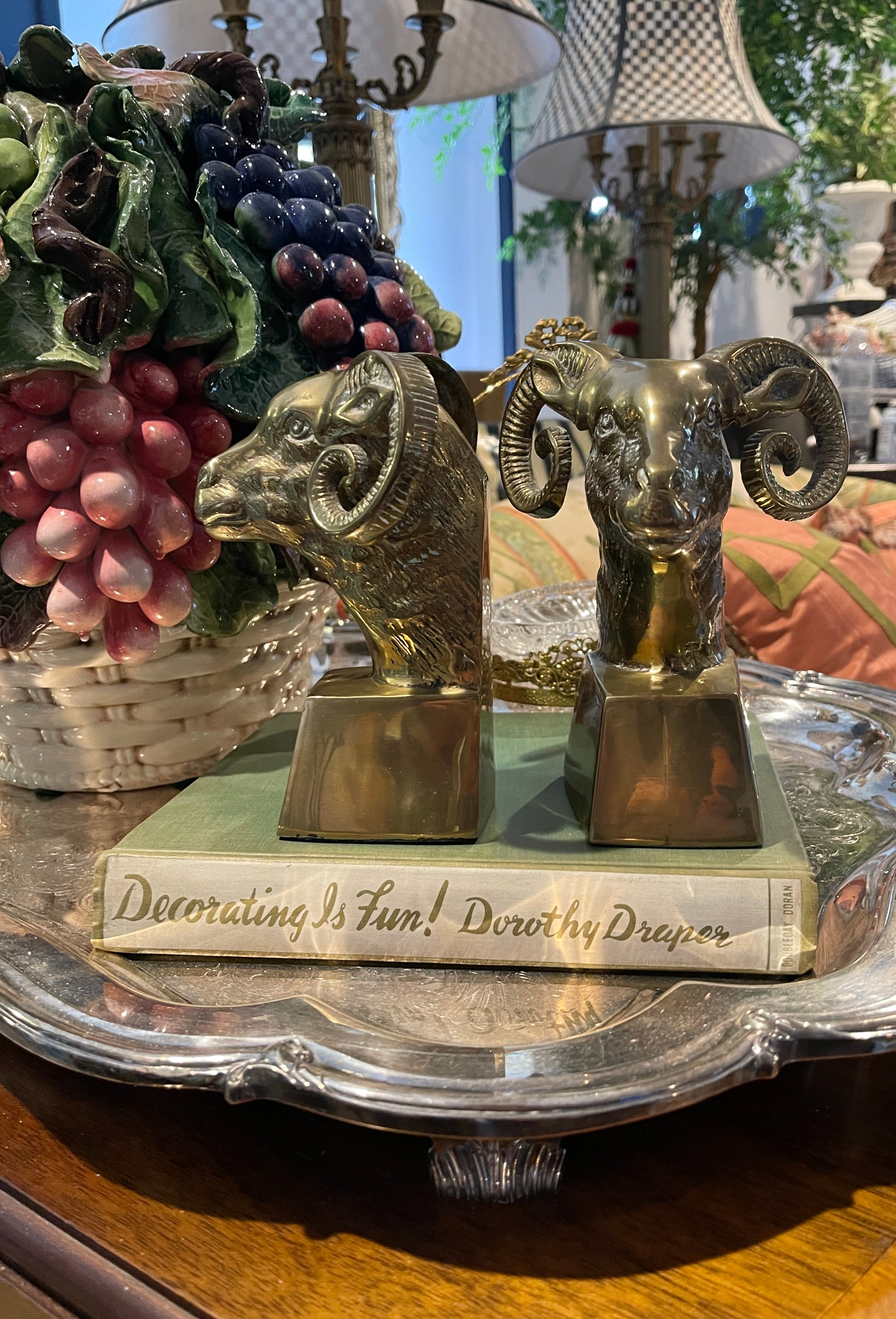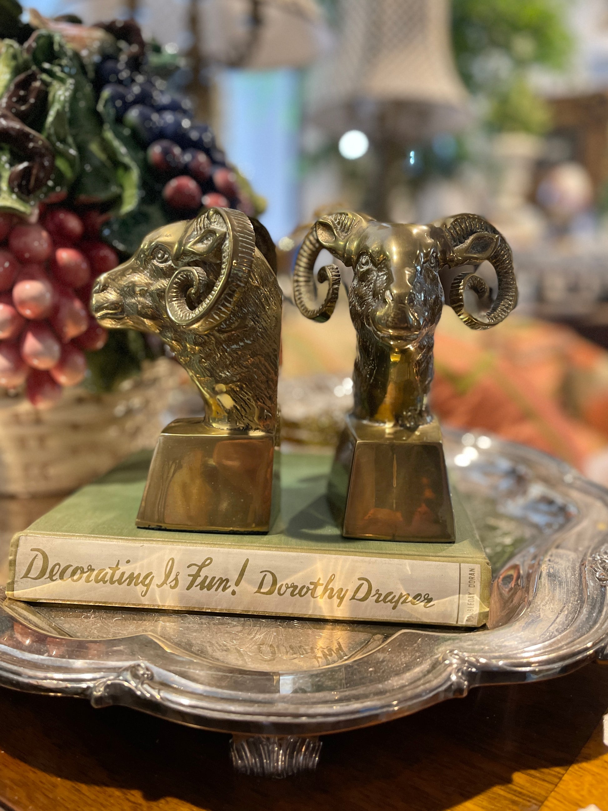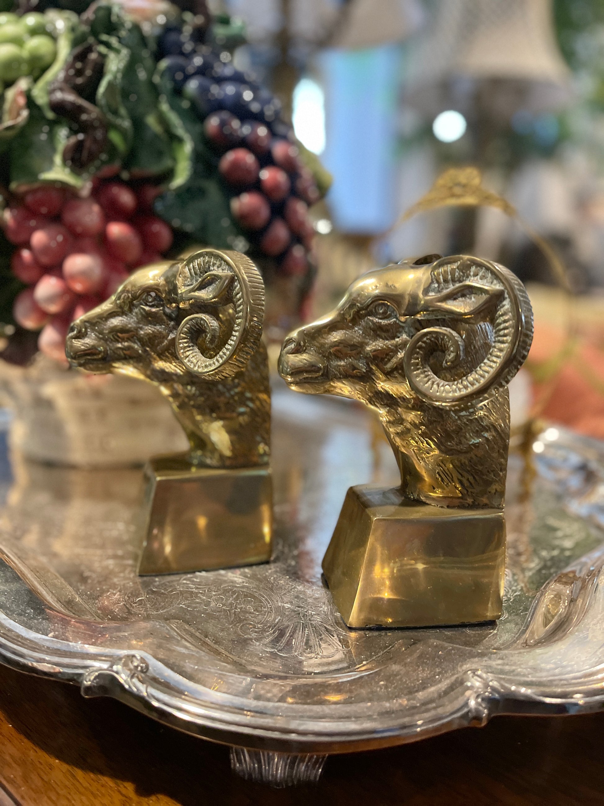 Vintage Brass Bookends, Brass Ram Art Deco Mid Century Decor