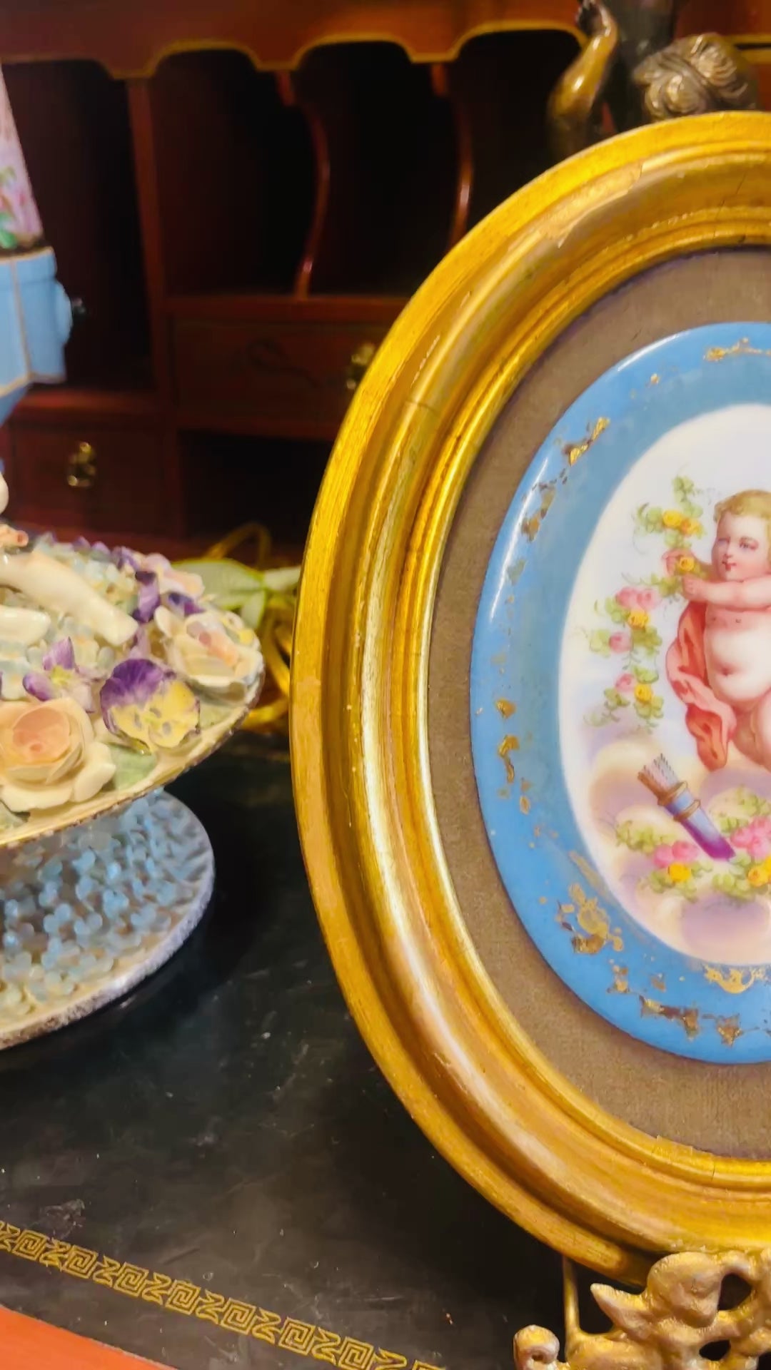 Likely created in the early 20th century in the Sevres style, pieces like this were inspired by the artistry of Louis XV and Madame de Pompadour’s era, when cherubs and garlands graced everything from snuff boxes to grand chateau walls. Today, it remains a quintessential French accent—perfect for a salon wall, boudoir vignette, or a romantic gallery wall of antique treasures.