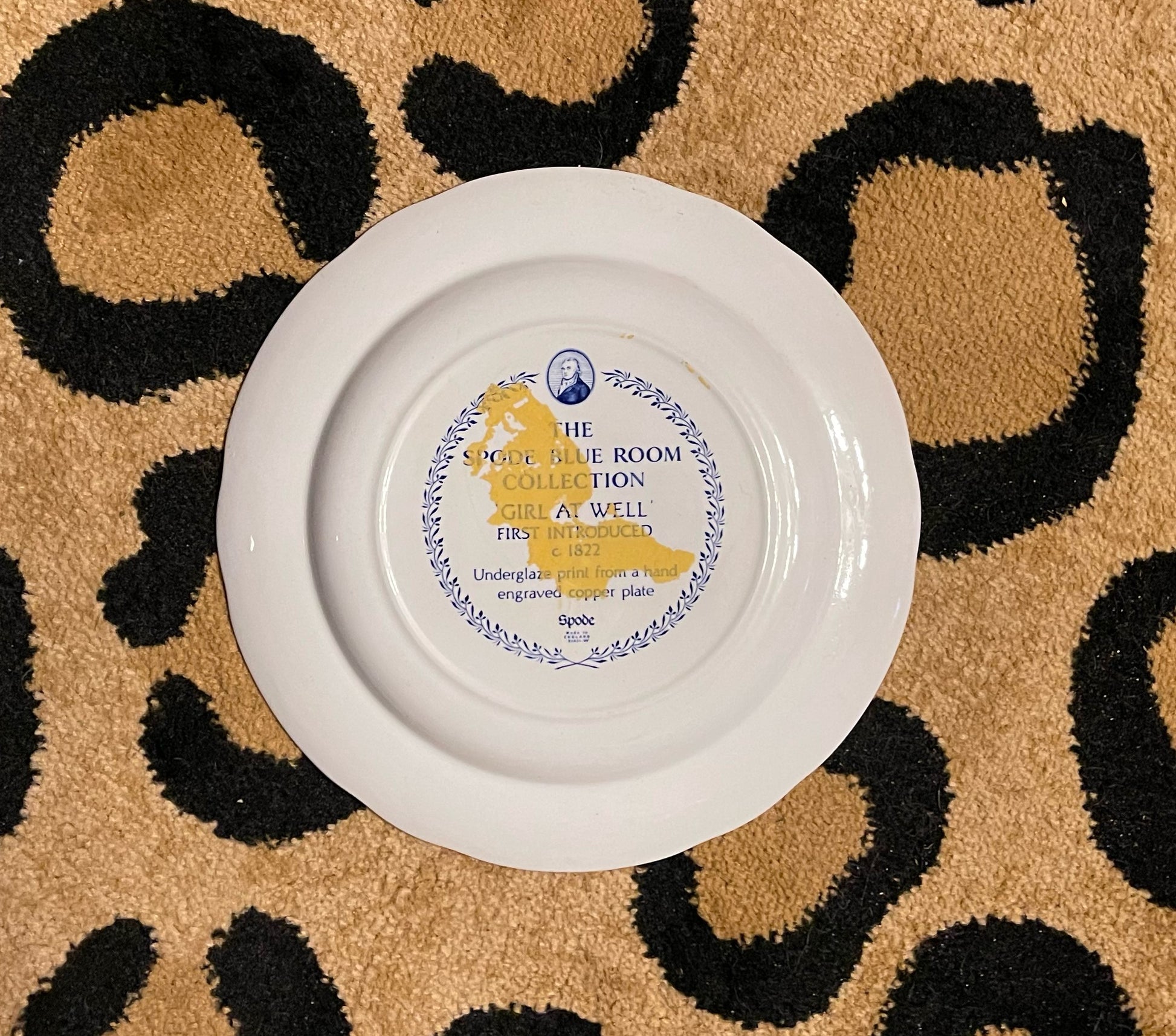Beautiful vintage dinner plate by Spode entitled, Girl At Well from their Blue Room Collection. The Underglaze print is from a hand engraved copper plate that was first introduced circa 1822.