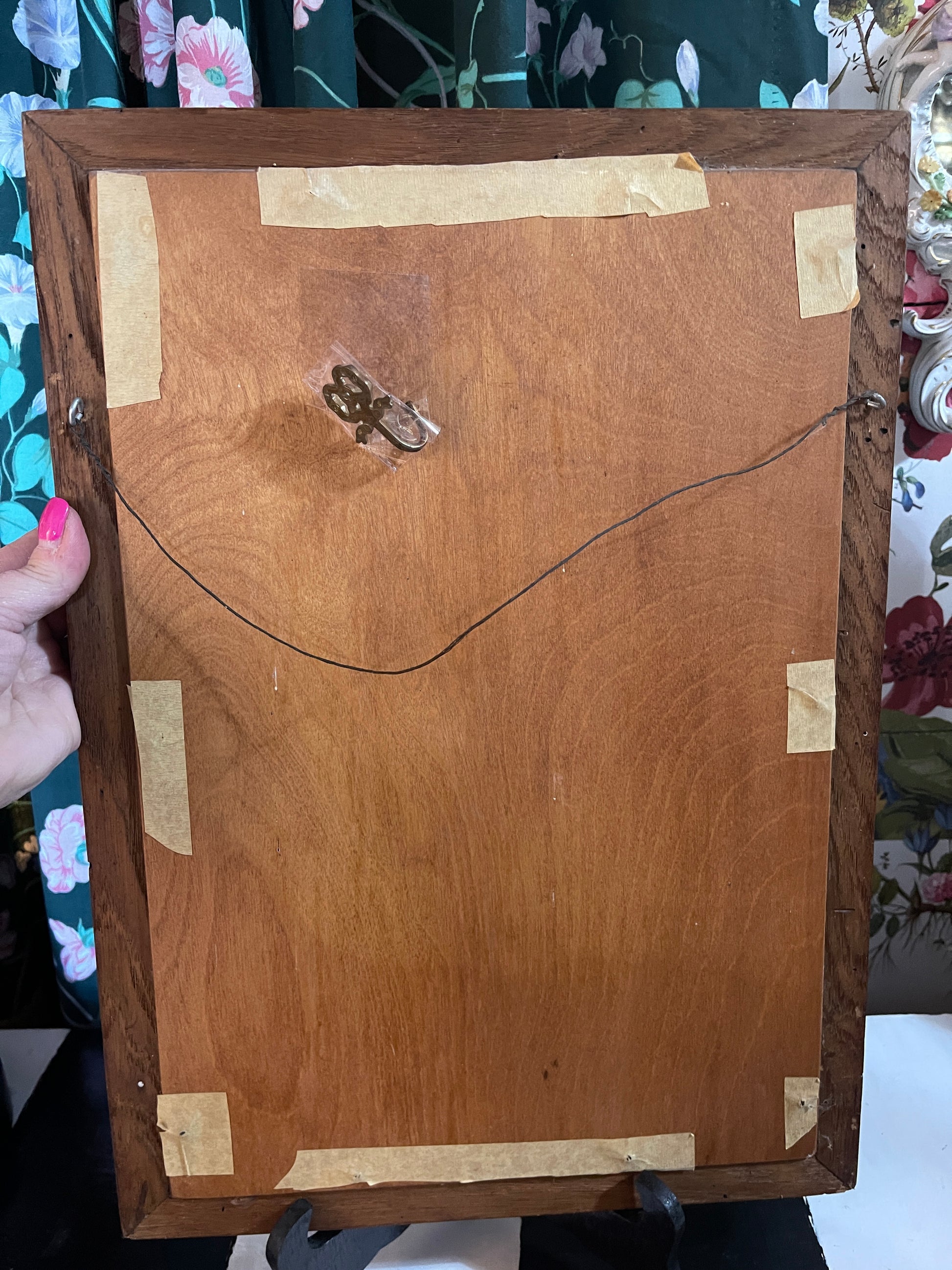 Vintage Dutch Delfware Country Tile Mural, Brass Bow Hook