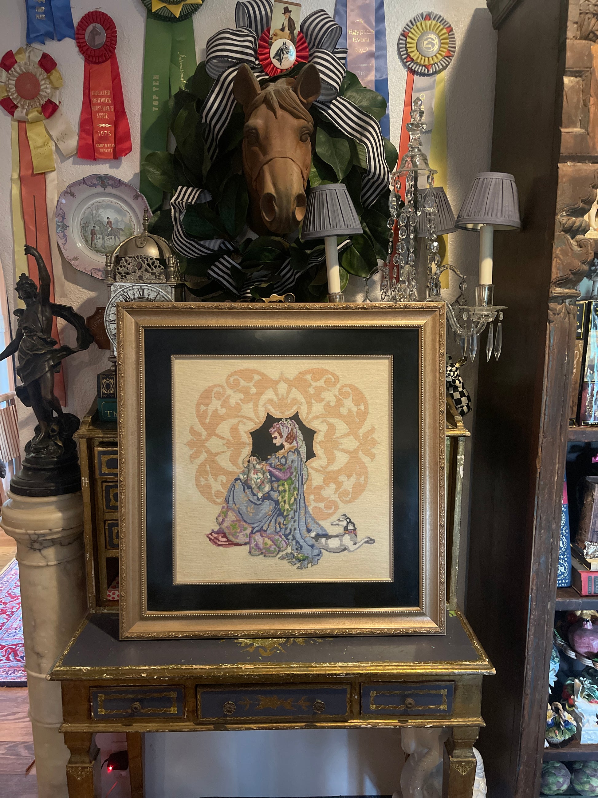 Perfect for a study, parlor, or maximalist gallery wall—this one-of-a-kind work adds depth, texture, and a touch of old-world majesty to any interior.