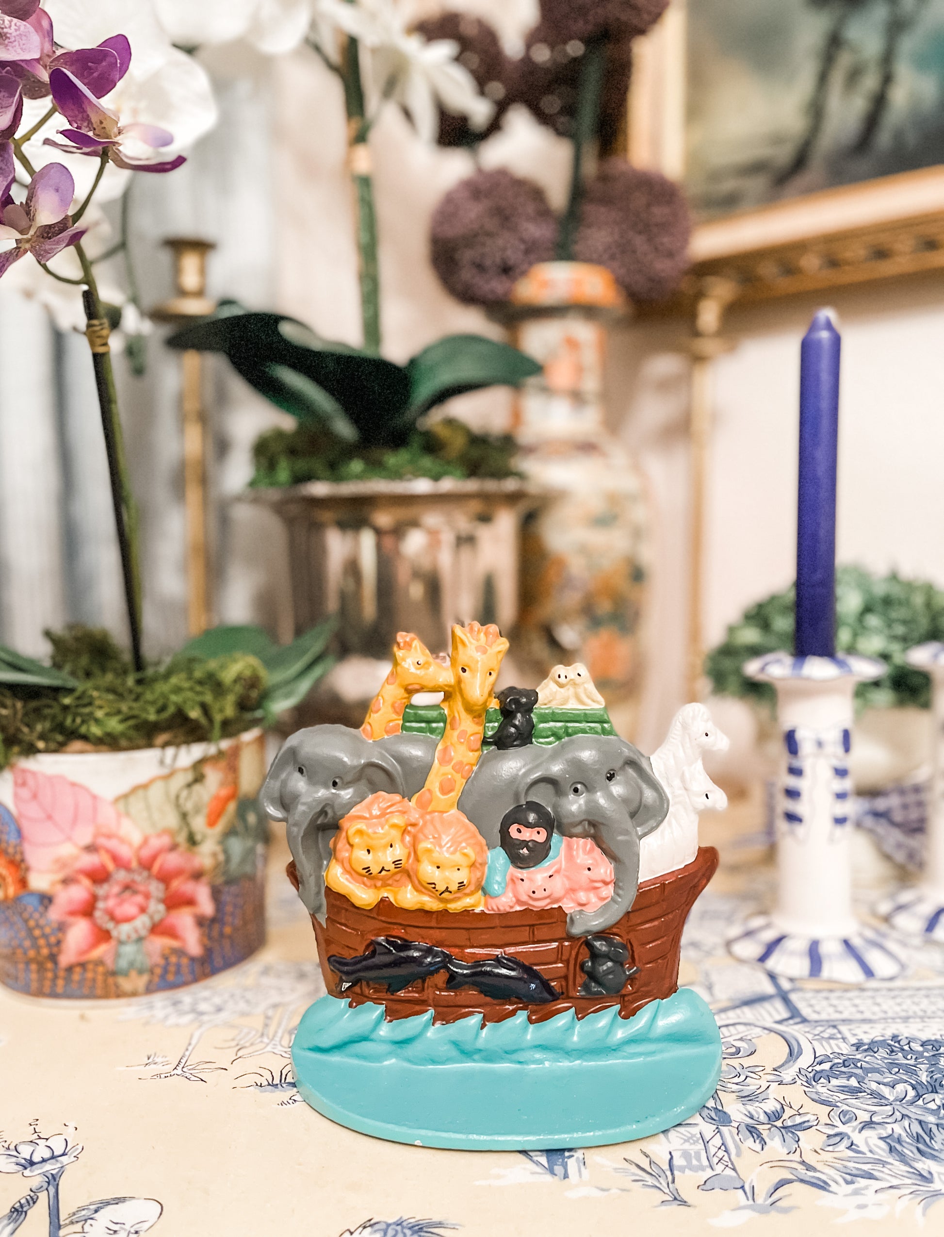 Vintage Cast Metal Noah’s Ark Doorstop, Hand Painted