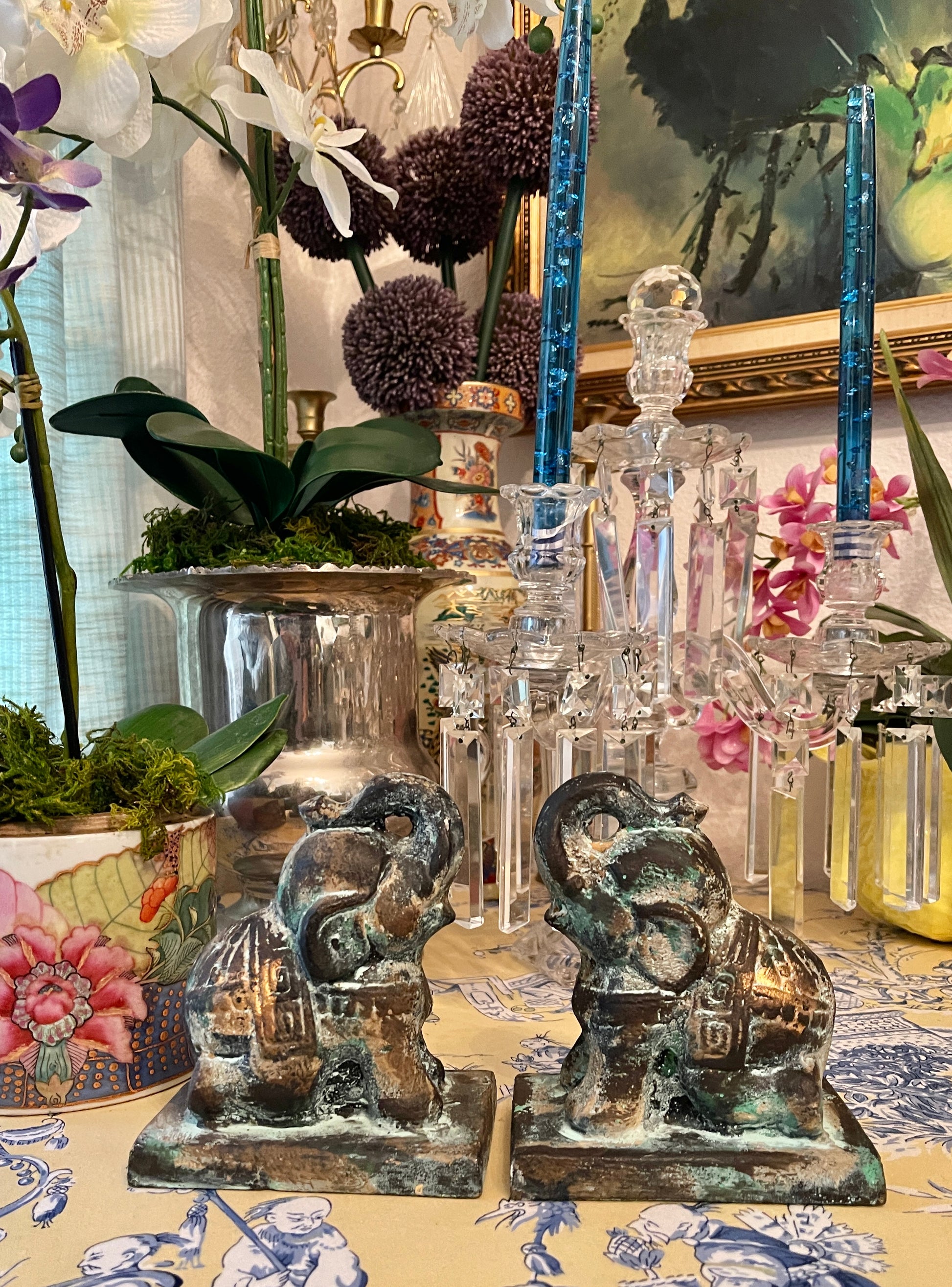 Vintage Elephant Bookends, Cast Metal, Made in Japan