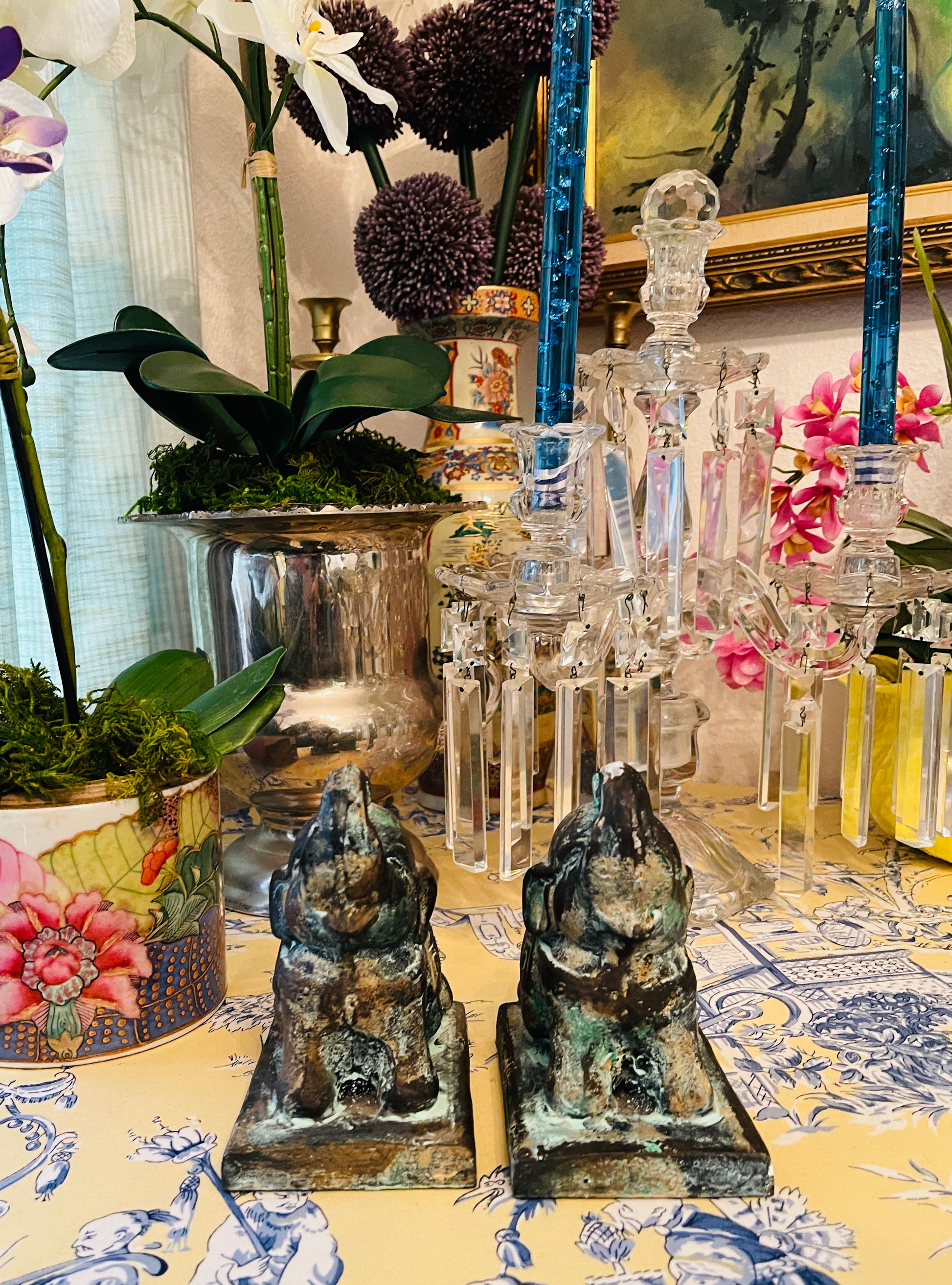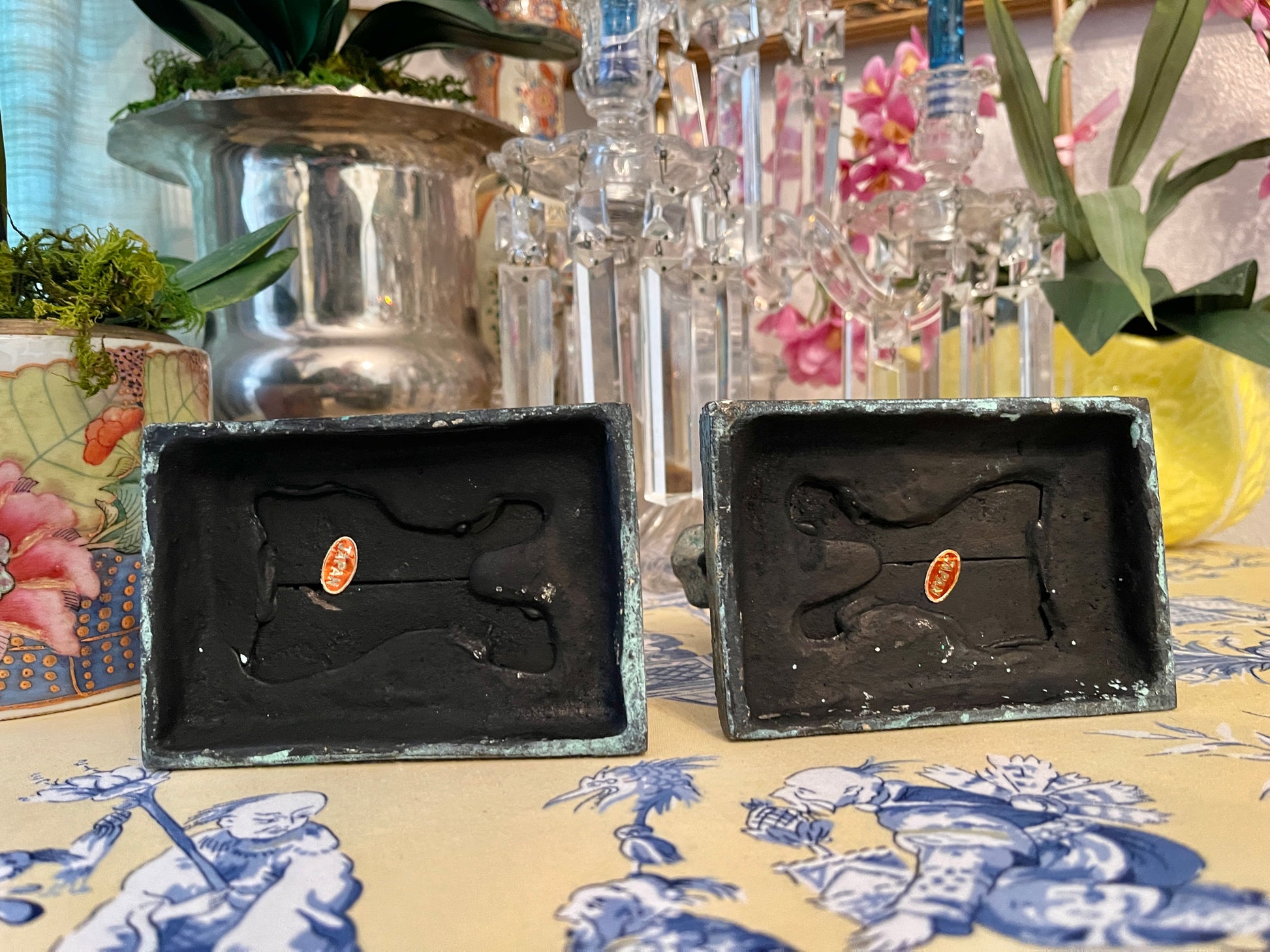 Truly fantastic pair of vintage cast iron elephant books ends. They’re such charmers with the paginated green and gold accents. Would also make great shelf decor. Both have the original red and gold JAPAN stickers.