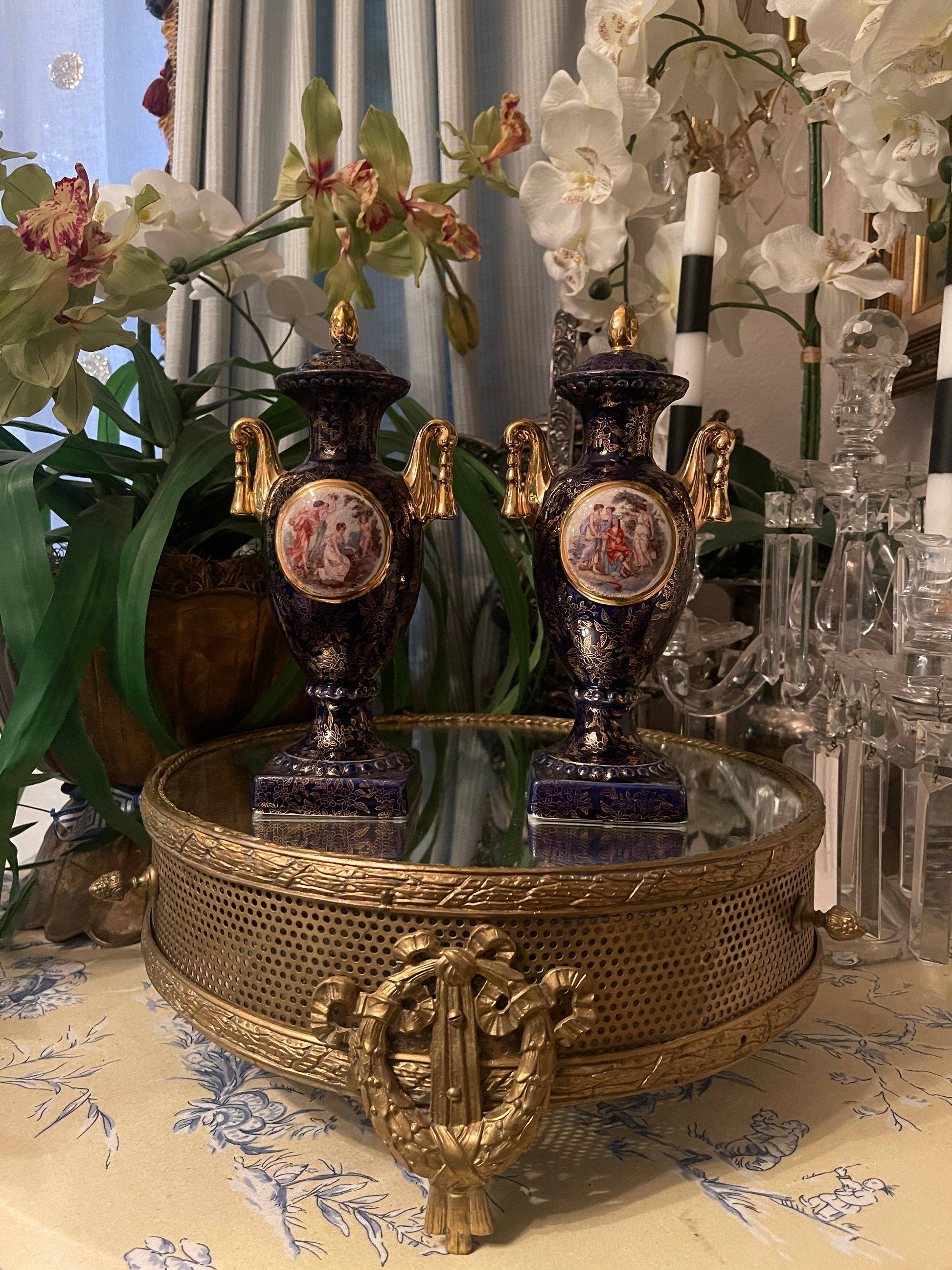 Empire Ware pieces were produced in England’s famed pottery region and are admired for their refined decorative quality—designed to echo the grandeur of earlier European forms while remaining perfectly suited for traditional interiors. The urn silhouette, accented by subtle handles and gilded details, makes these especially lovely for mantels, étagères, bookcases, or flanking a mirror or artwork.