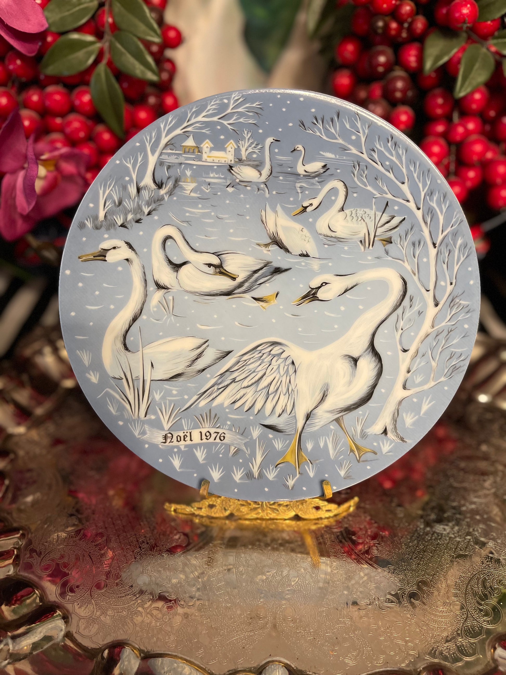 Vintage Haviland Limoges Seven Swans A'Swimming Plate, Twelve Days of Christmas