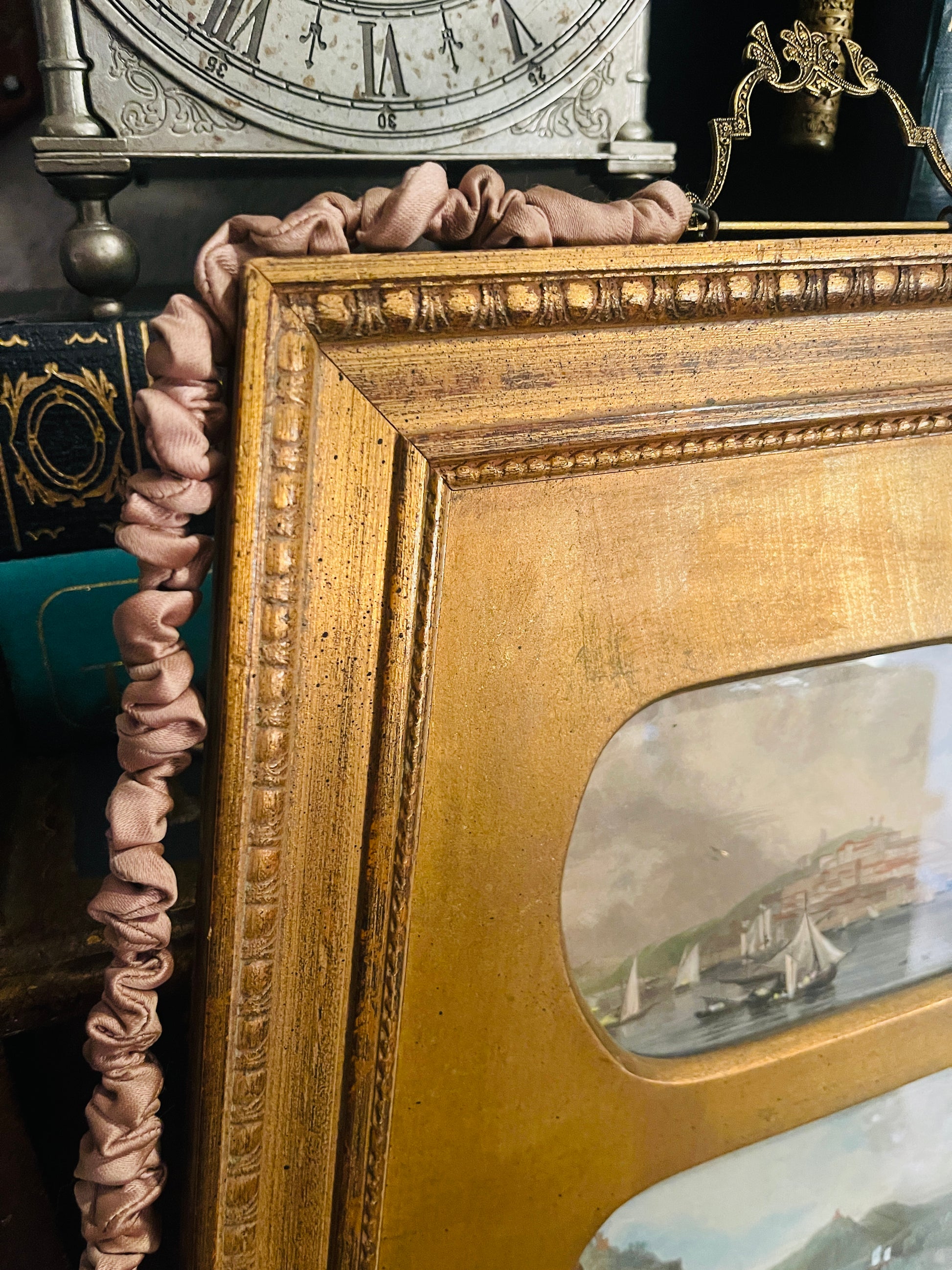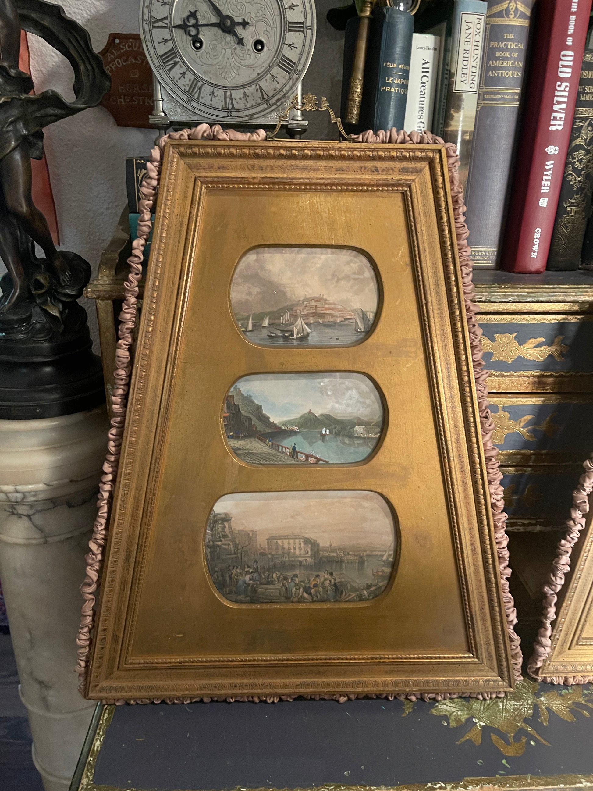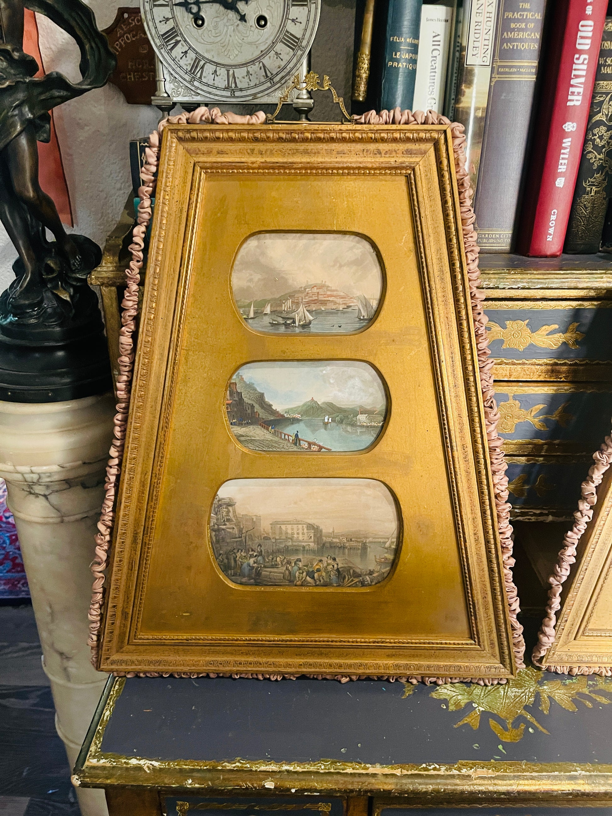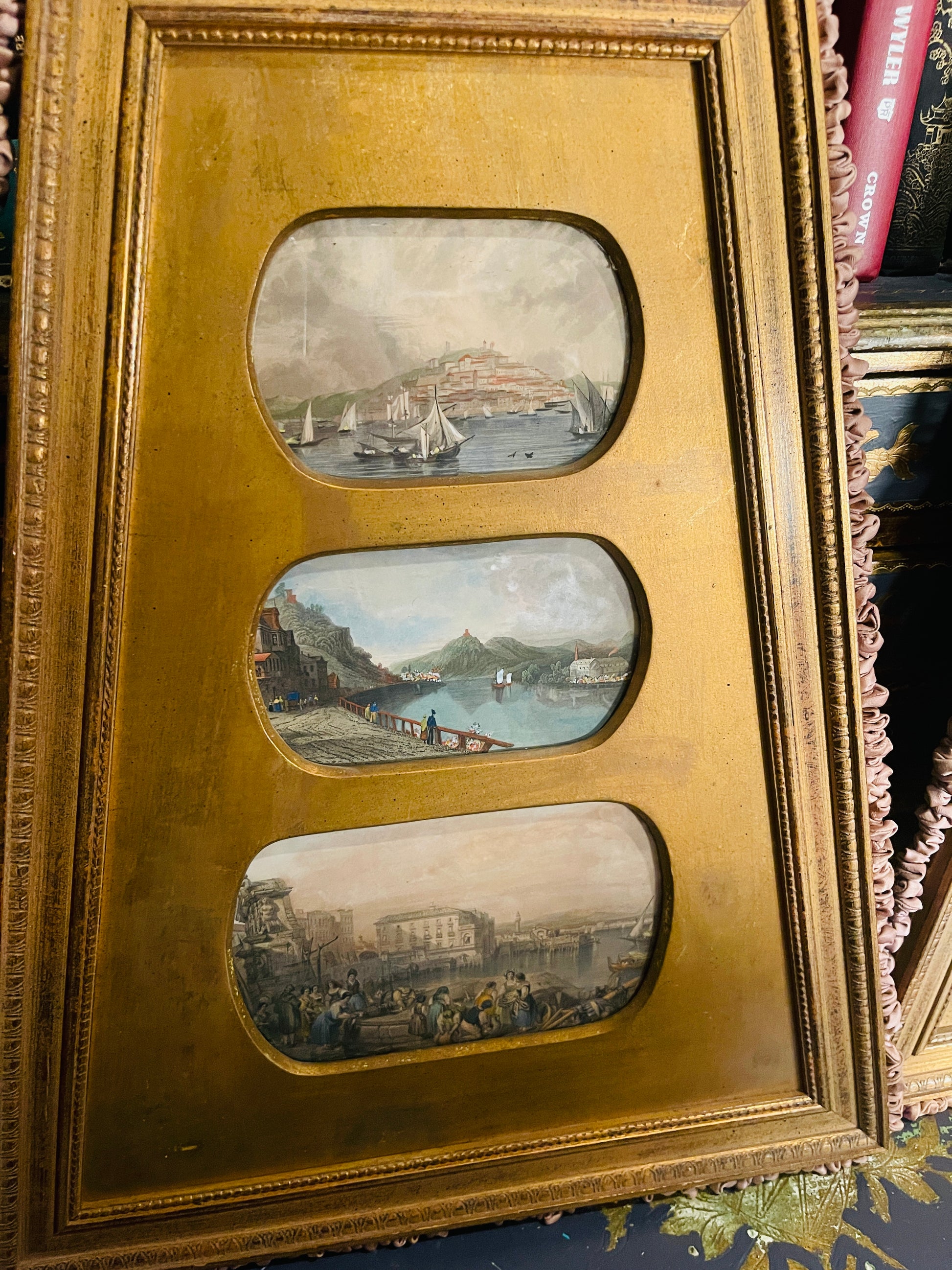 Vintage Italian Gilt Framed Coastal Art – Mediterranean Harbor Scenes
