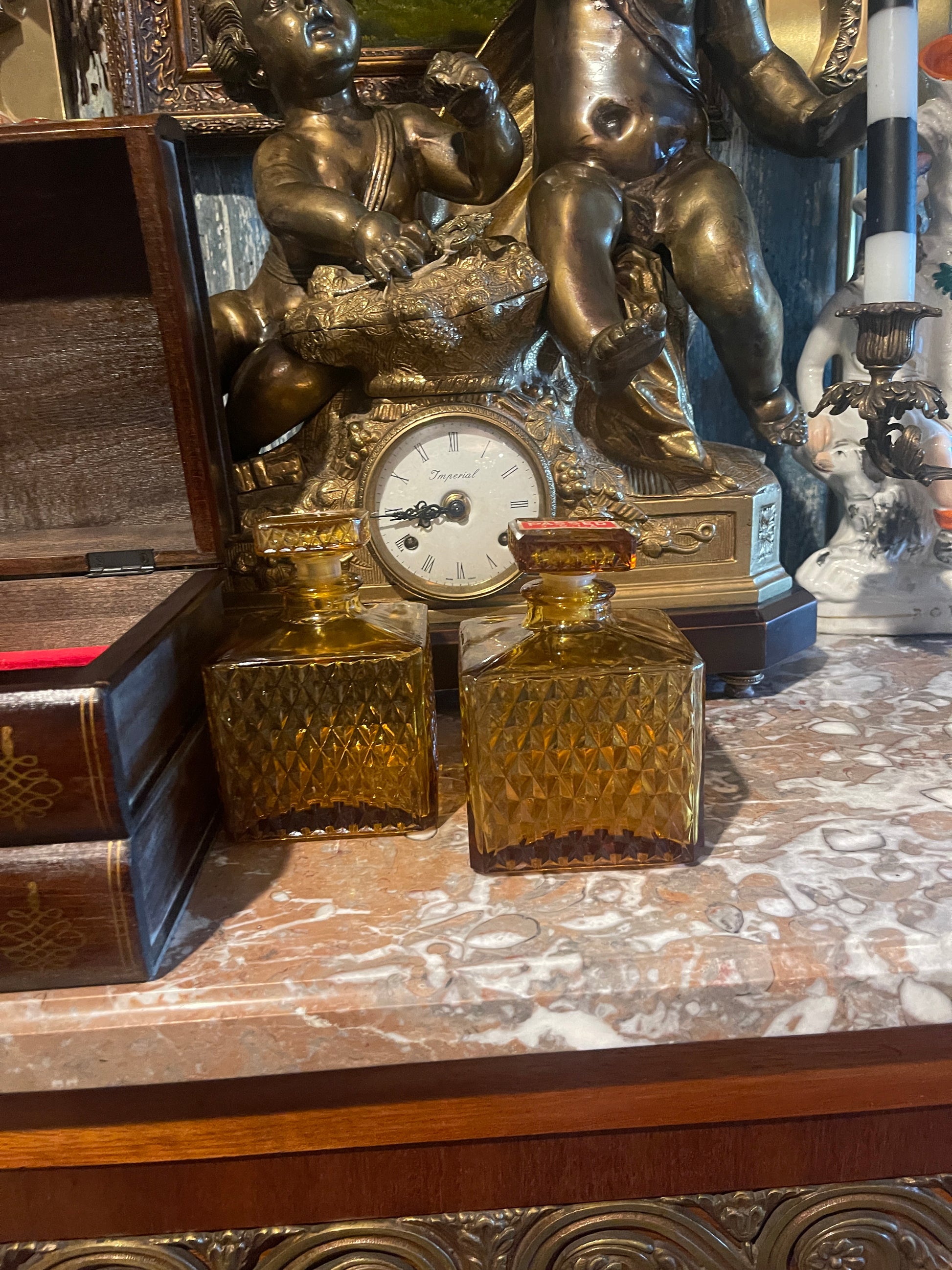 The hinged lid opens to reveal a velvet-lined compartment ideal for storing jewelry, keepsakes, coasters, or bar accessories—making it as functional as it is decorative. The amber glass accent adds a touch of retro glamour, while the faux-book design channels classic study charm and literary nostalgia. The original seal on the reverse remains.