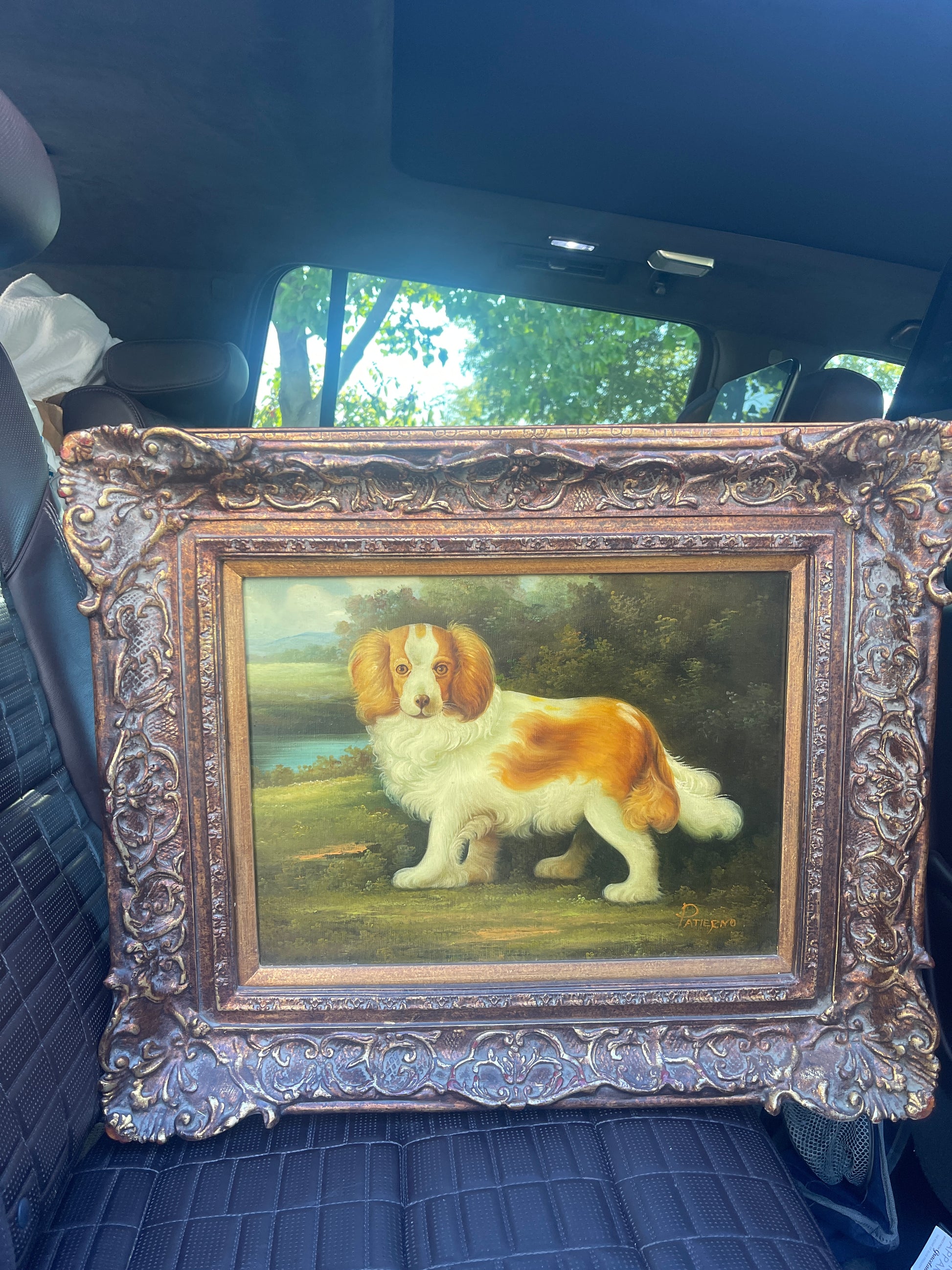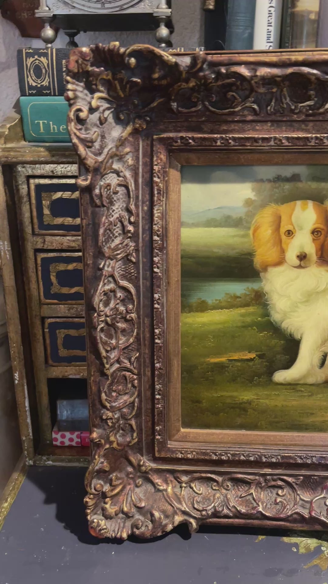 Vintage Oil Painting – Spaniel Dog Portrait in Ornate Frame