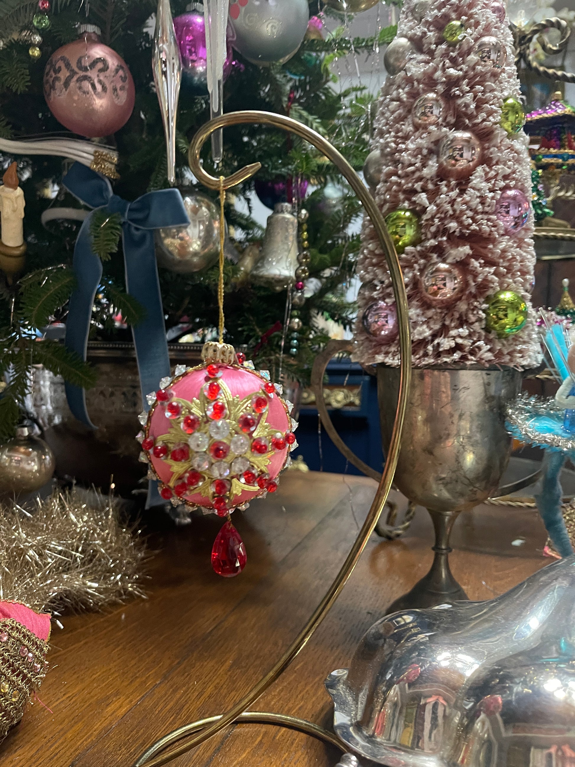 Vintage Pink and Gold Push Pin Christmas Ornament