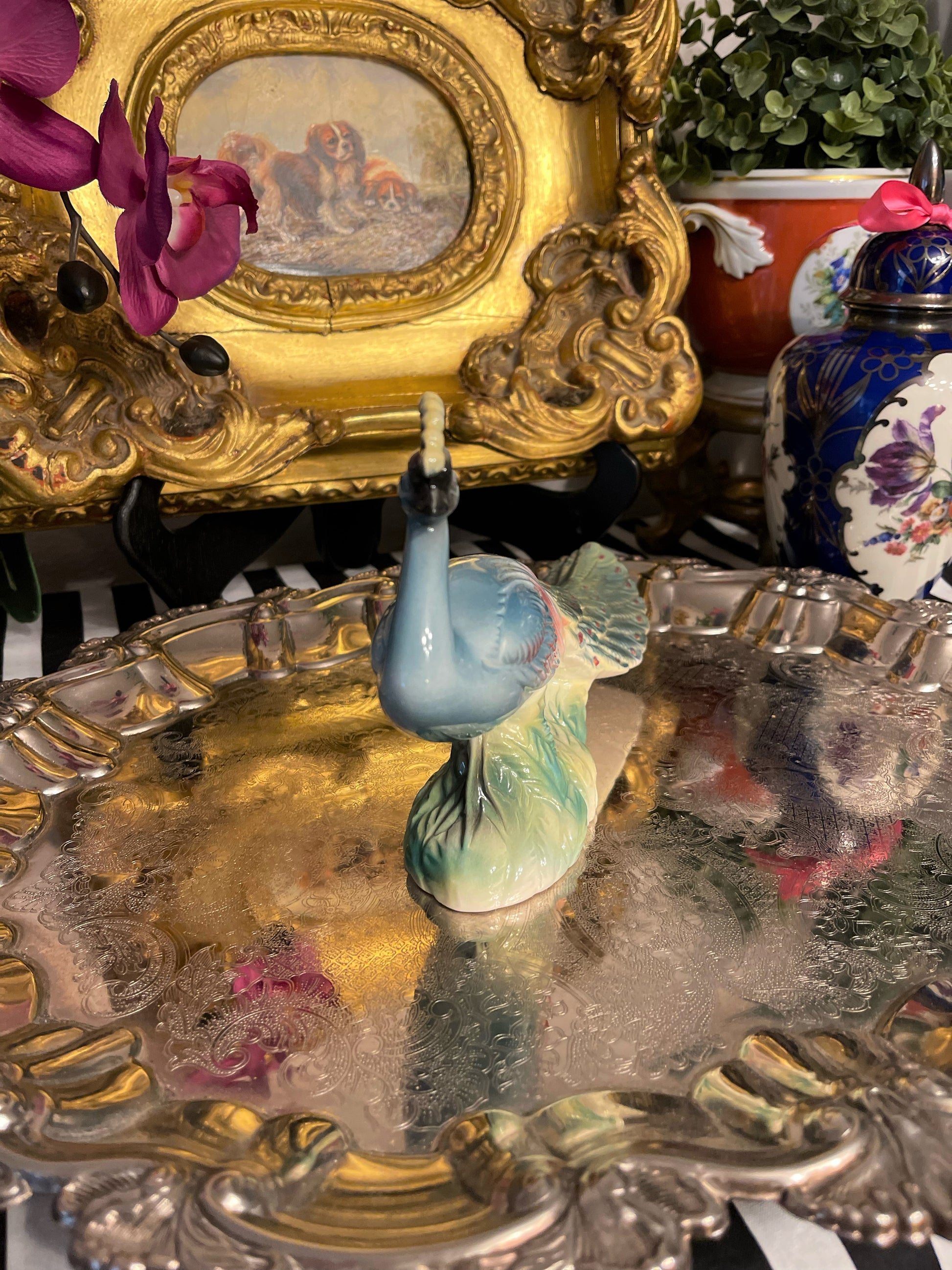 MCM Vintage Stewart B McCulloch California Pottery Peacock. It's beautifully colored and detailed.