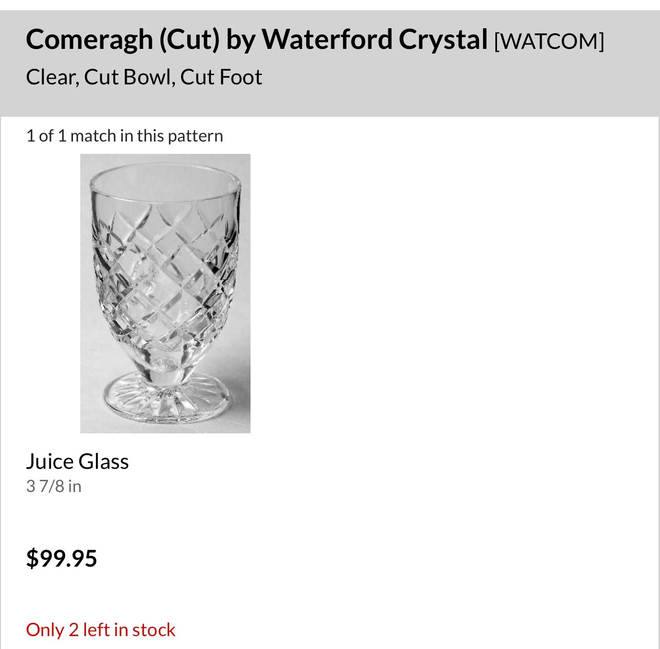 Vintage Waterford Comeragh (cut) Juice Glass. How stunning are these??? Measuring 3 7/8” tall, this versatile size allows them to be used for a sipping cocktail or Apéritif and OJ with brunch.