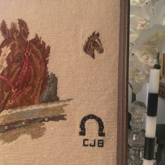 Perfect for a Western-themed study, equestrian gallery wall, or cabin retreat, this needlepoint adds character, craftsmanship, and cowboy charm to any space.