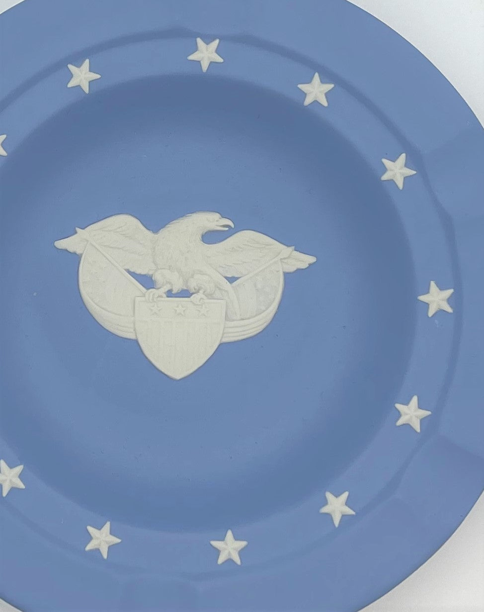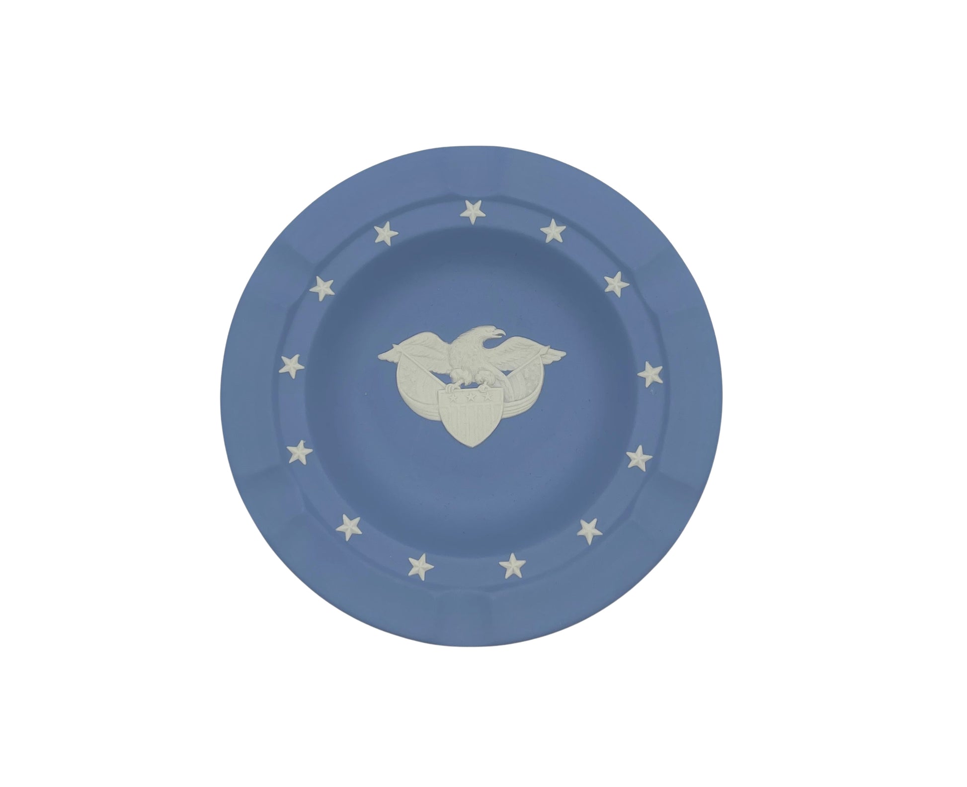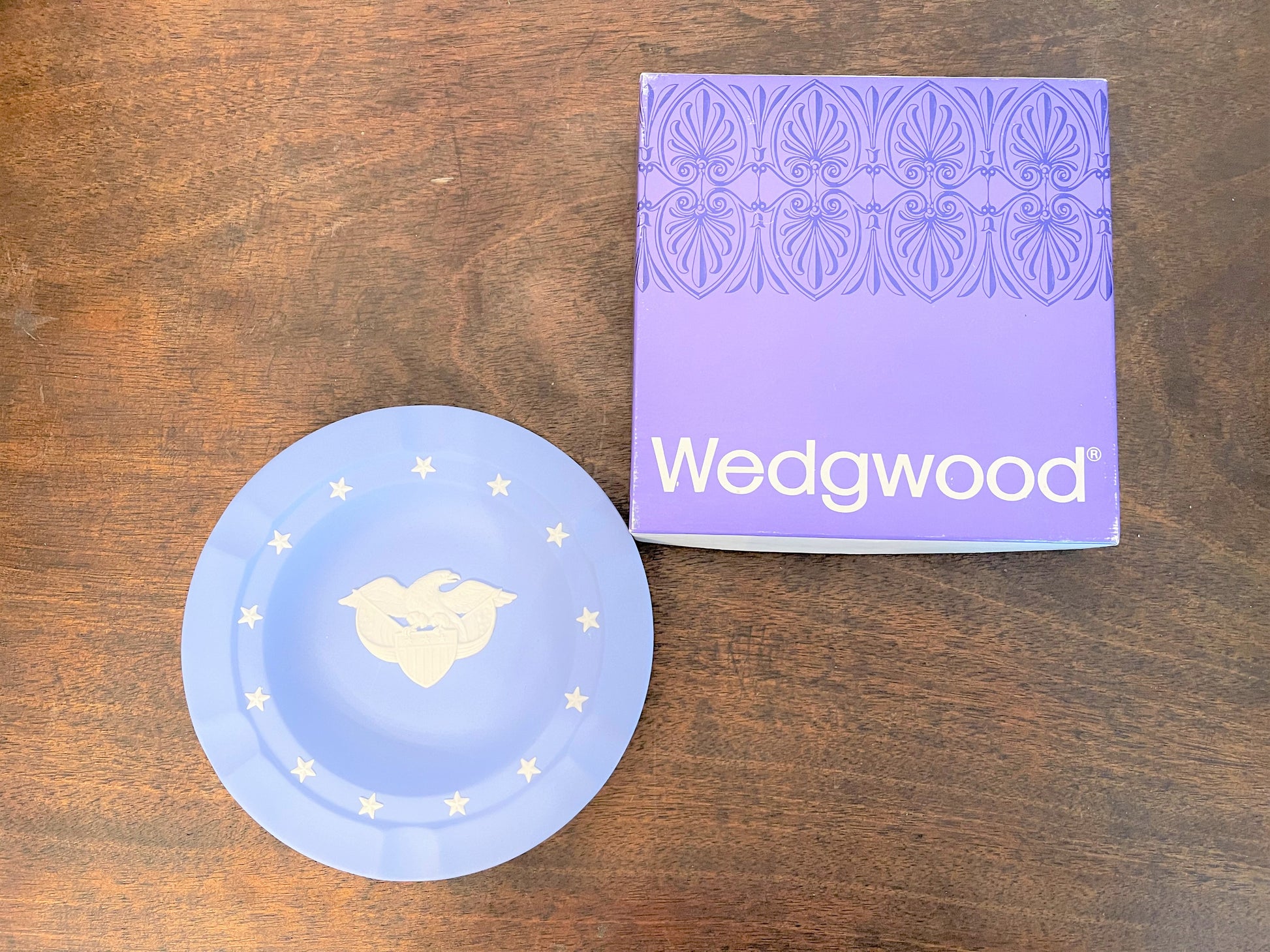 Vintage Wedgwood Jasper Executive Ash Tray in the Eagle and Star pattern as you can see by the vibrant white, it was never used as an ash tray and is truly a fantastic décor piece. It comes in the original box and would make a lovely gift. Please see all pictures as they are considered part of the description.