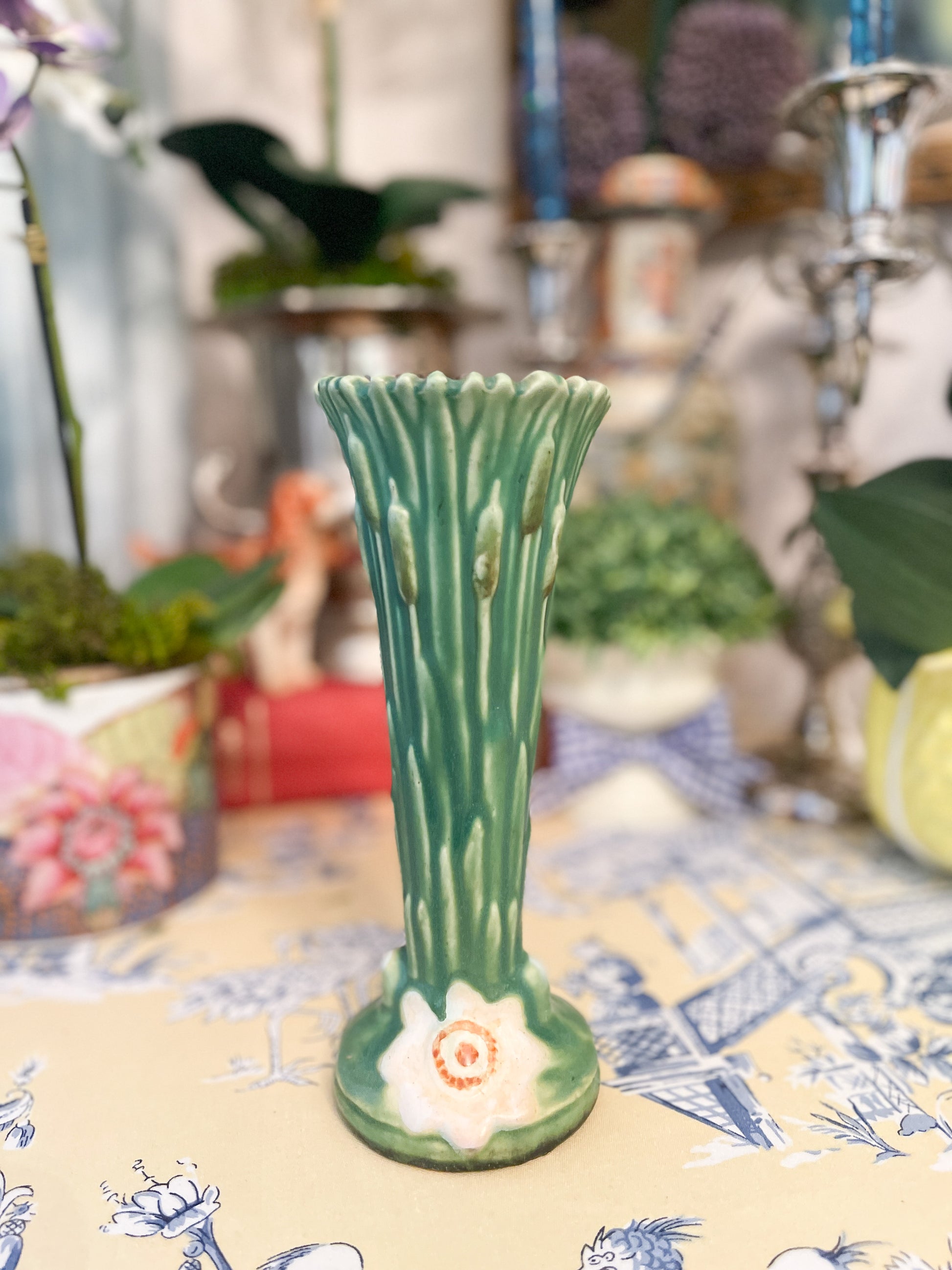 Vintage, near antique, Weller Pottery Ardsley Water Lily Vase. Such charming a piece with the Lily and Cattails.