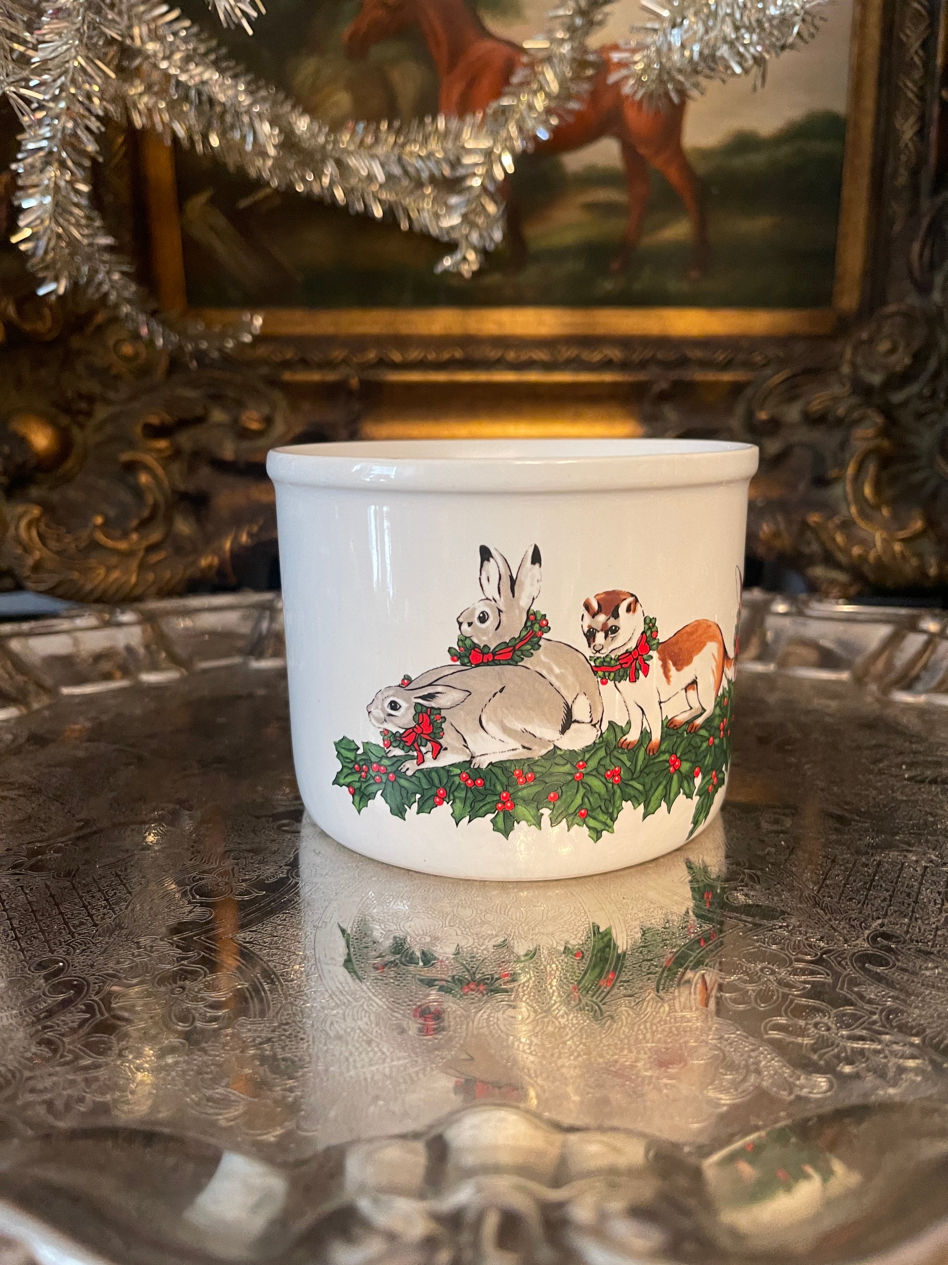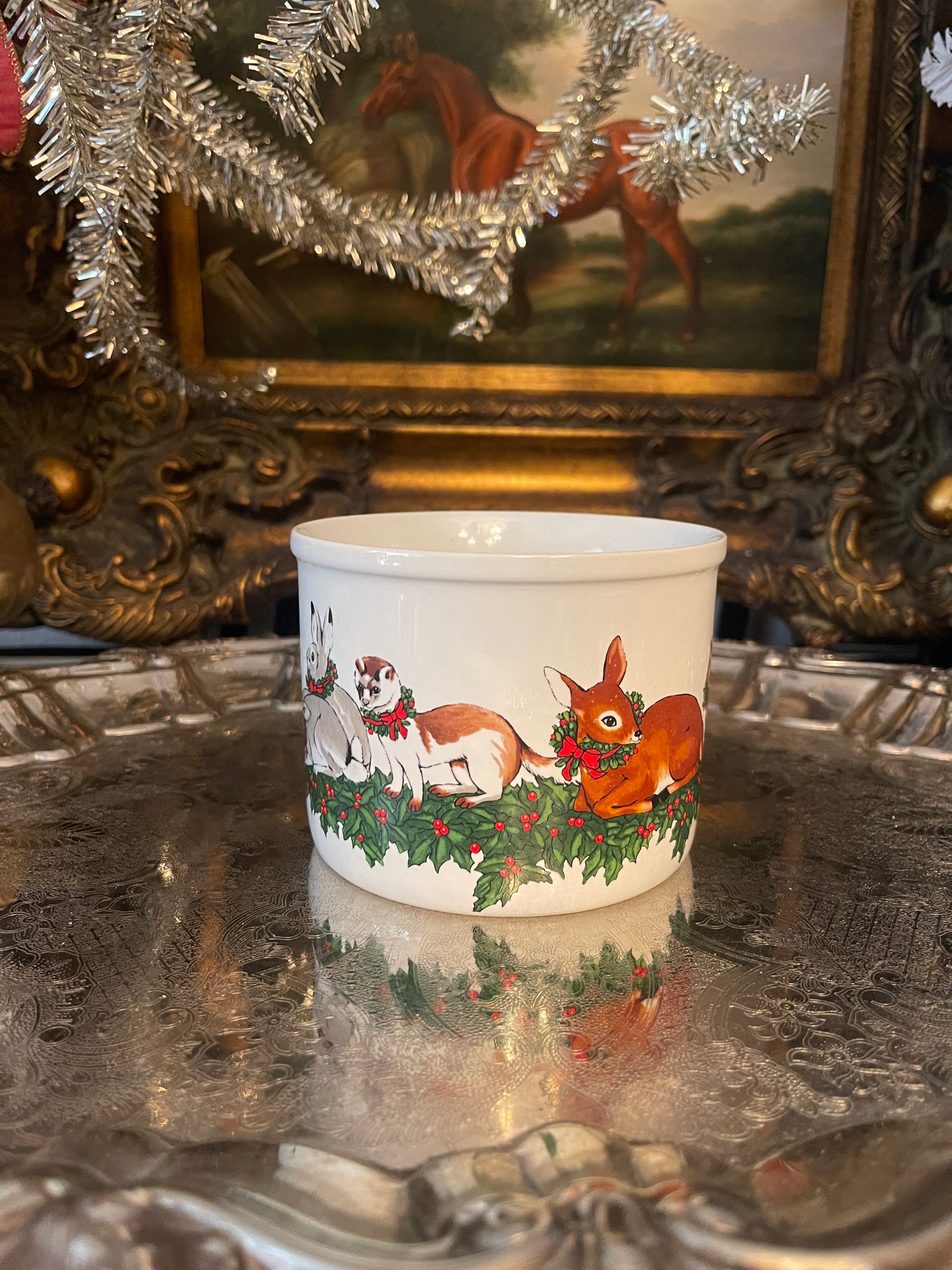 Vintage CMC 1991 Animal Christmas Print Bowl Dish perfect to hold a small Christmas tree, a large ornament, or for a bottle of champs/wine.